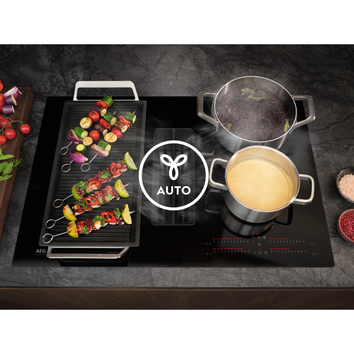 Indukční varné desky s integrovaným odsavačem par získaly AEG EcoLine na základě nejvyšší energetické třídy.