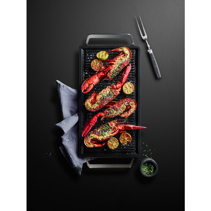 Díky grilu Plancha proměníte vaši varnou desku během chvíle na gril a získáte tak dokonalou chuť venkovního grilování po celý rok. Steaky ugrilované k dokonalosti, správně křupavý chřest a opražené mušle s křupavou kůrkou a měkkým vnitřkem, kdykoliv se vám zachce.