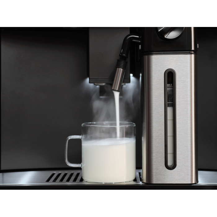 Vestavěný kávovar s extra širokým dotykovým ovládáním pro efektivní navigaci. Připravte si a vychutnejte výběr kávy, espressa a dalších horkých nápojů přesně tak, jak je máte rádi – v pohodlí domova.
