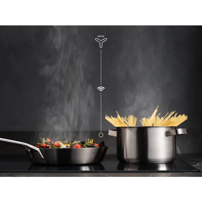 Odsavač par 6000 Hob²Hood® se bezdrátově připojí k varné desce. Když zapnete varnou desku, aktivují se světla a rychlost ventilátoru se přizpůsobí teplotě nastavené na varné desce. Užívejte si v kuchyni svěží atmosféru bez zápachu při každém vaření.