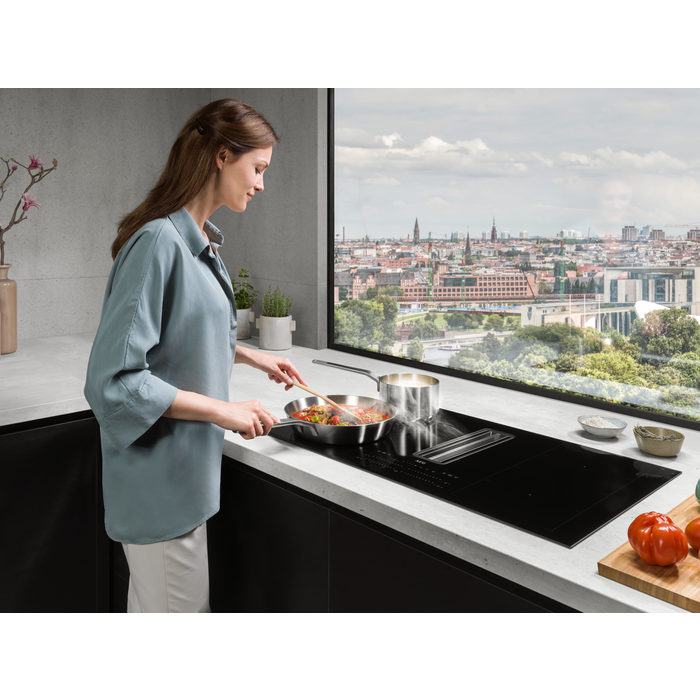 Tato kombinace indukční varné desky a integrovaného výkonného odsavače par vám dává v designu kuchyně volnost, kterou potřebujete. Nyní máte více prostoru na nápady, jak kuchyň uspořádat.