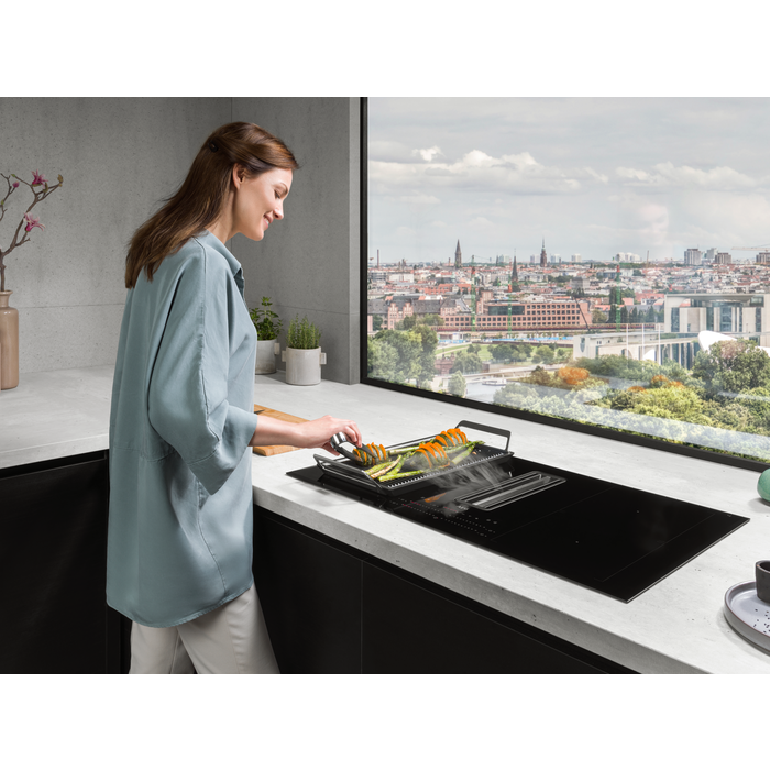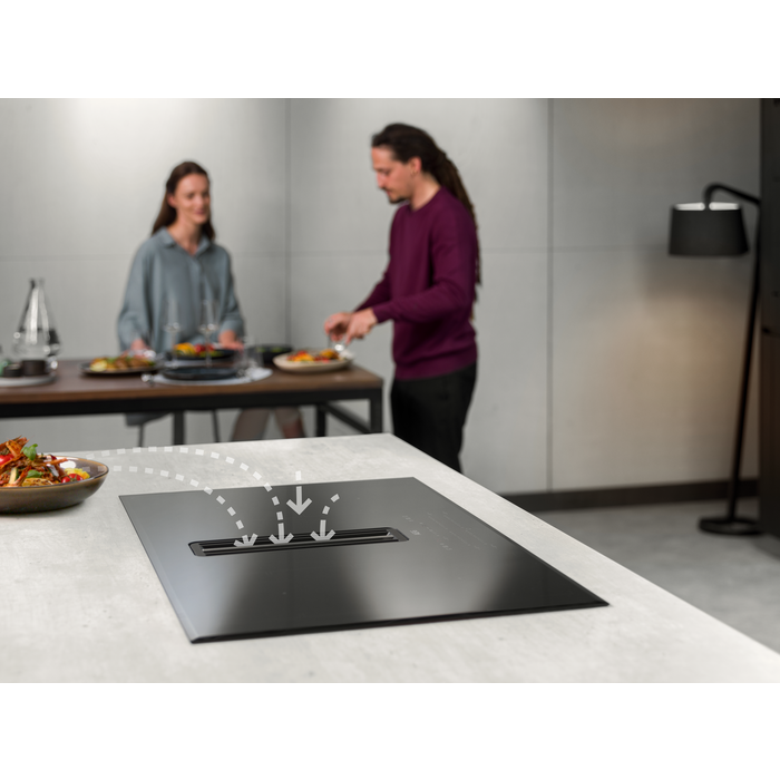 Tato kombinace indukční varné desky a integrovaného výkonného odsavače par vám dává v designu kuchyně volnost, kterou potřebujete. Nyní máte více prostoru na nápady, jak kuchyň uspořádat.