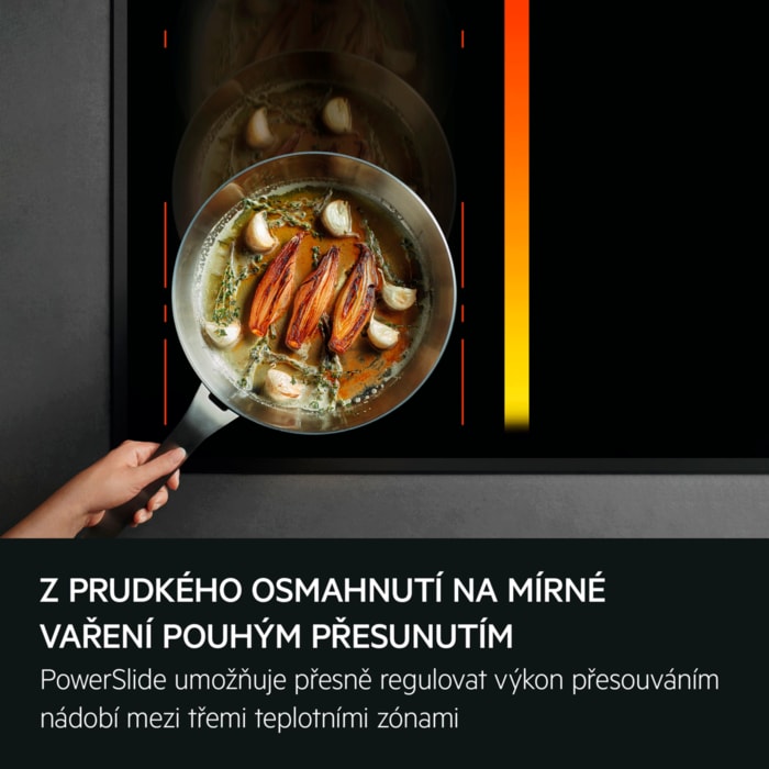 Od uvedení do varu přes pozvolné vaření až po udržování tepla: když potřebujete opakovaně rychle měnit teplotu při přípravě pokrmu, použijte PowerSlide. Jednoduše přesouvejte pánev z ohřevu na ohřev, aniž byste museli přestávat upravovat teplotu během vaření.