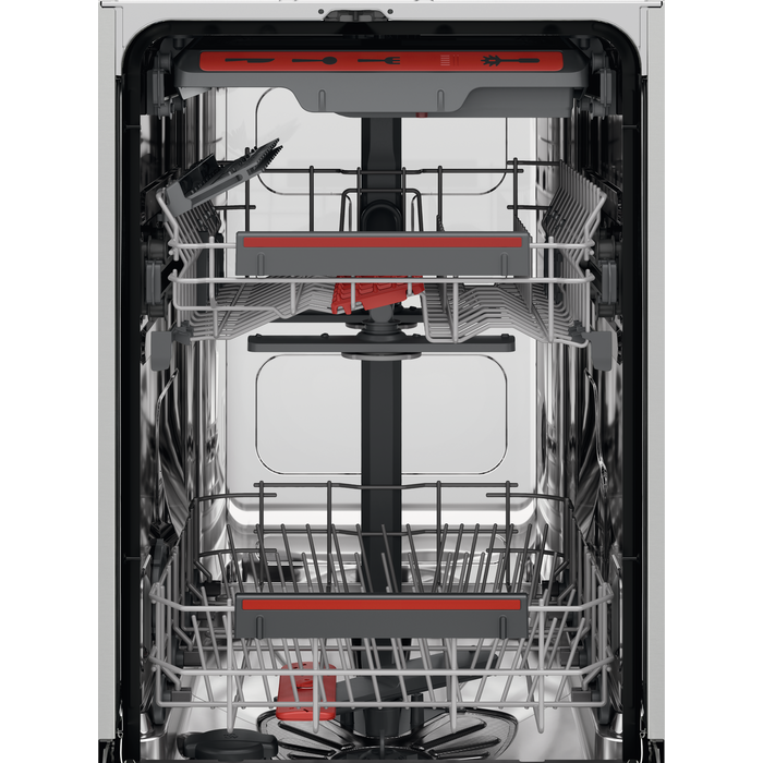 V myčce nádobí 6000 SatelliteClean® se důkladně umyje i těsně naskládané nádobí nebo velké kusy nádobí. Převratné ostřikovací rameno zajišťuje až 3× lepší pokrytí ostřiku vodou a zaručuje mytí v celém vnitřním prostoru myčky.