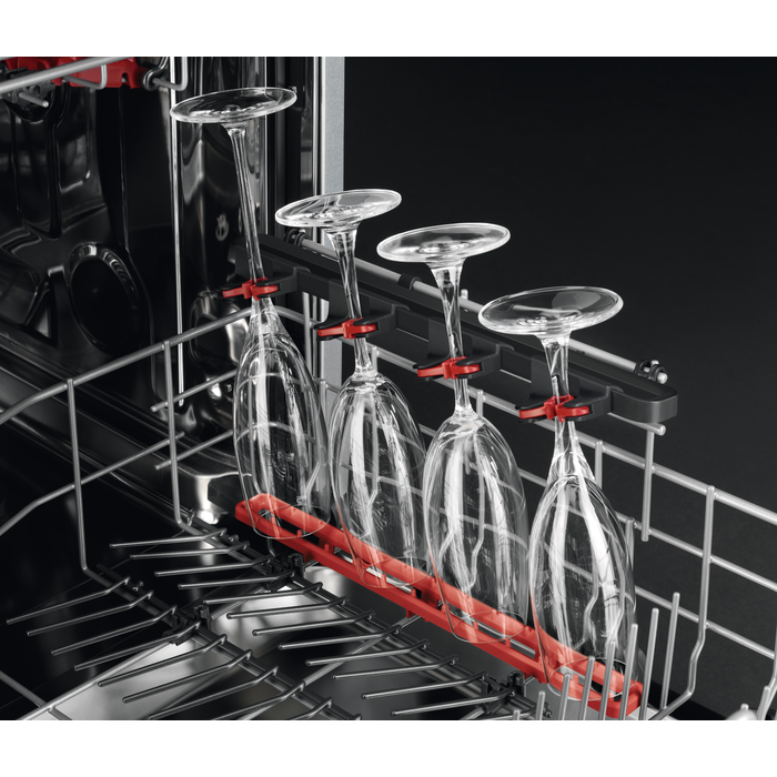 V myčce AEG se systémem GlassCare jsou vaše sklenice v bezpečí a nablýskané. Naše jedinečné úchyty SoftGrips a podpěry SoftSpikes drží sklenice šetrně a pevně na svém místě. Najdete je v horním i dolním koši, kam se pohodlně vejdou i sklenice na vysoké noze.