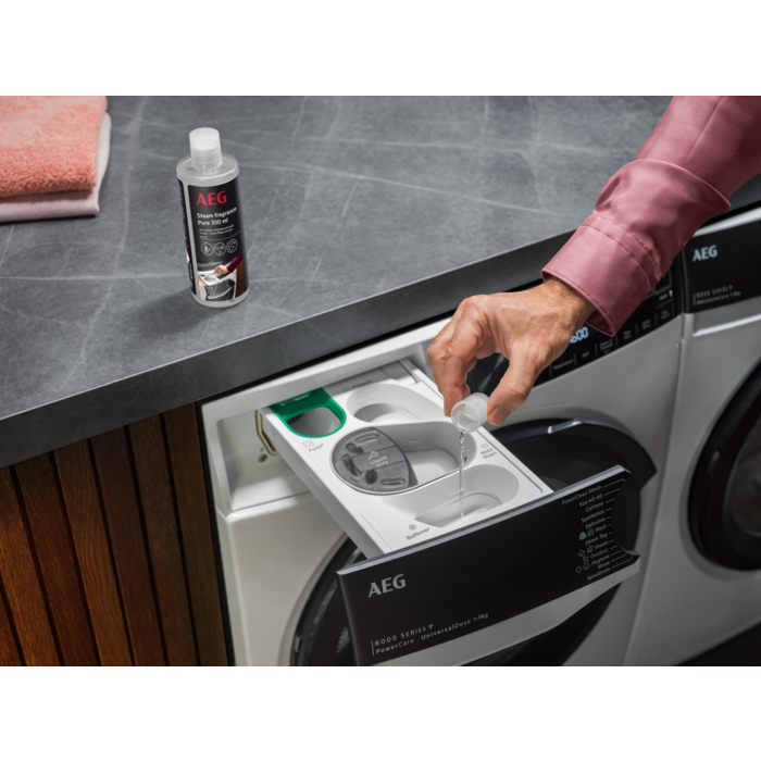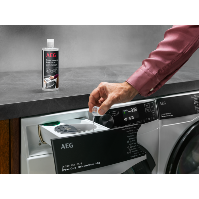 Parní vůně AEG osvěžuje i jemné oblečení, odstraňuje pomačkání a přidává svěžest s jemnou vůní vyvinutou exkluzivně společností AEG. Díky ošetření párou vydrží vaše oblečení déle, než při praní v celých pracích cyklech. Parní vůně lze bezpečně používat s programy pro kašmír a parními programy pro jemné tkaniny, jako je kašmír a vlna. Za pouhých patnáct minut bude vaše oblečení jako „právě vyprané“. Použijte parní vůni spolu s kašmírovými a parními programy v pračkách/pračkách se sušičkou AEG.