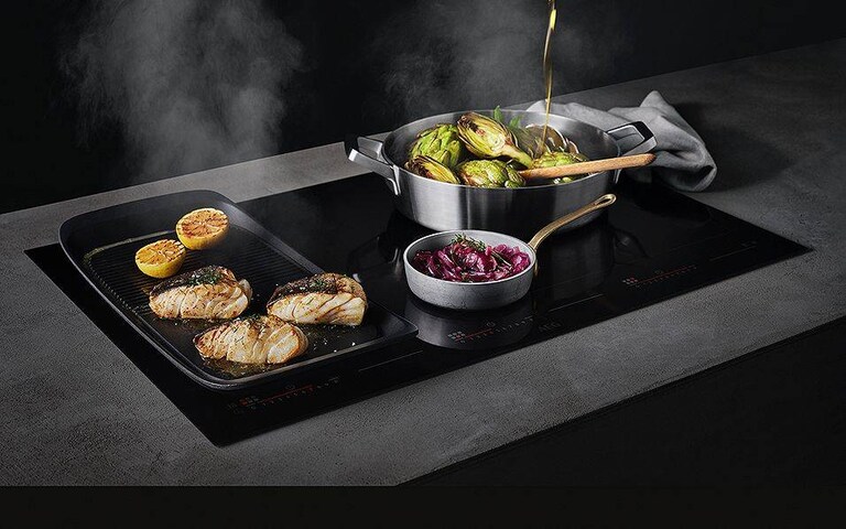 Dokonale se přizpůsobí všem vašim potřebámTechnologie FLEXIBRIDGE™ umožňuje propojit jednotlivé varné zóny indukční desky do větších celků a zajistit tak její nejvyšší možnou flexibilitu.