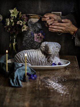 Upečeného beránka vyndejte z trouby a nechte 10–15 minut chladnout. Pak ho z formy vyklopte na rošt, aby vychladl úplně.