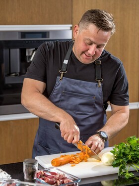 Šalotku nasekáme nadrobno a necháme ji na másle zesklovatět. Přidáme na malé kostičky nakrájenou kořenovou zeleninu a orestujeme dozlatova. Následně zeleninu zalijeme vývarem a minimálně 20 minut povaříme.